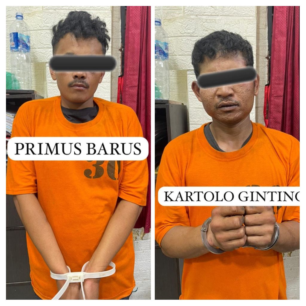 Penangkapan dilakukan sekitar pukul 22.00 WIB di Jalan Jamin Ginting, Desa Sumbul, Kecamatan Kabanjahe. Kedua tersangka berinisial PB (25), warga Desa Sumbul, dan KG (40), warga Berastagi, diamankan tanpa perlawanan oleh Unit Opsnal Sat Reskrim Polres Tanah Karo.