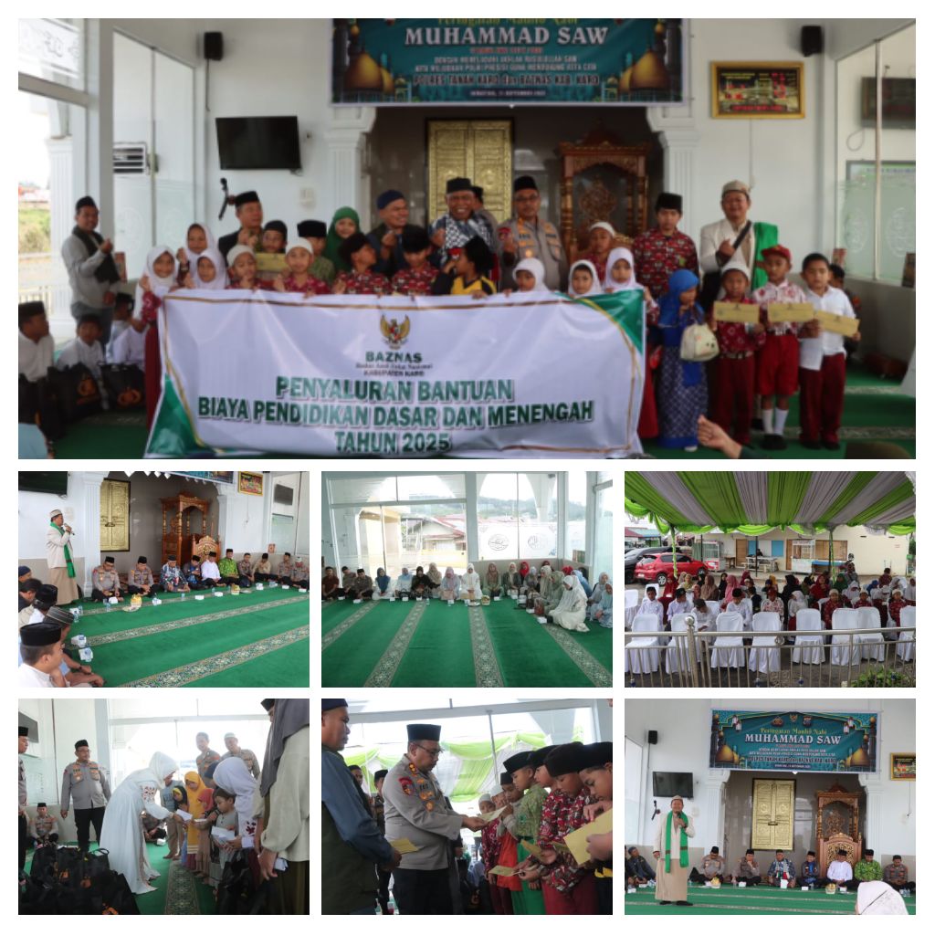 Berastagi, Tanah Karo – Blusuk.online – Dalam rangka memperingati Maulid Nabi Muhammad SAW 1447 Hijriah, Polres Tanah Karo bekerja sama dengan Badan Amil Zakat Nasional (Baznas) Kabupaten Karo menggelar kegiatan religius dan sosial yang berlangsung khidmat di Masjid Husnul Khotimah, Mapolres Tanah Karo, Berastagi, Kamis (11/09/2025) pukul 09.00 WIB.