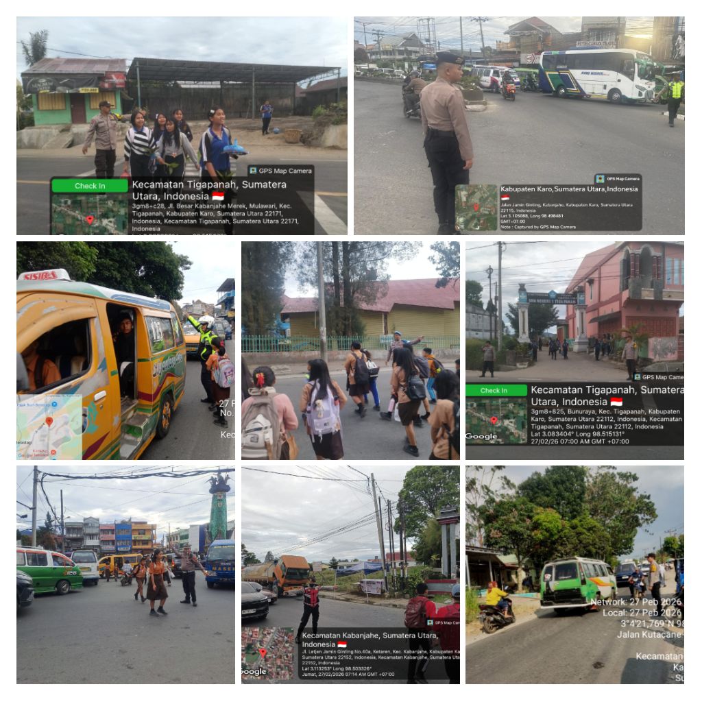 Karo – Blusuk.online – Polres Tanah Karo bersama jajaran polsek melaksanakan kegiatan pengaturan lalu lintas pada Jumat (27/2/2026) mulai pukul 07.00 WIB hingga selesai. Kegiatan ini merupakan bentuk pelayanan prima kepada masyarakat guna menciptakan kelancaran arus kendaraan serta menjamin keselamatan pengguna jalan di wilayah hukum setempat.
