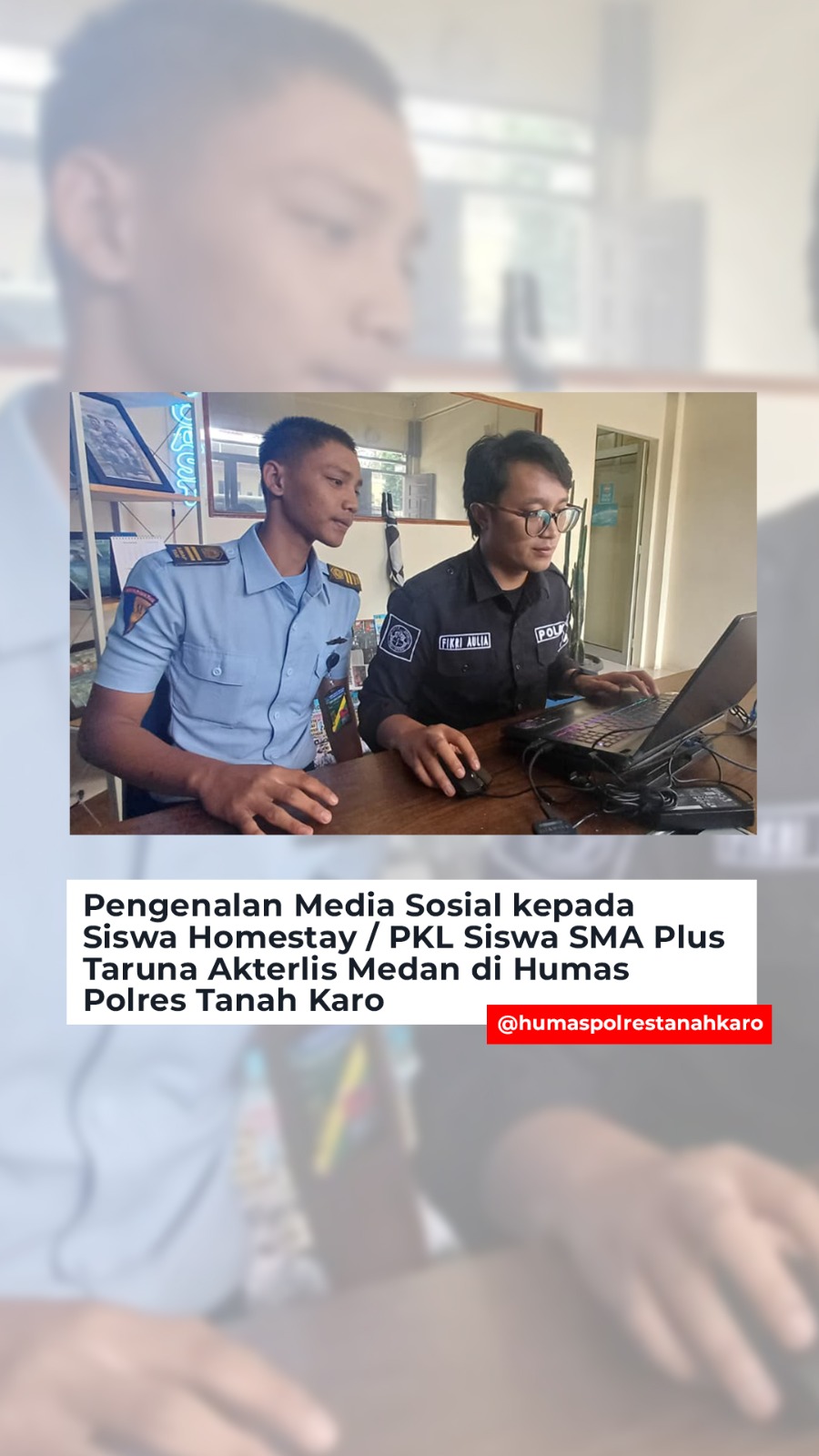 Blusuk.online – Tanah Karo, [16 Desember 2025] – Humas Polres Tanah Karo melaksanakan kegiatan pengenalan media sosial kepada siswa homestay/PKL dari SMA Plus Taruna Akterlis Medan. Kegiatan ini bertujuan untuk meningkatkan pemahaman siswa mengenai penggunaan media sosial secara bijak, positif, dan bertanggung jawab.
