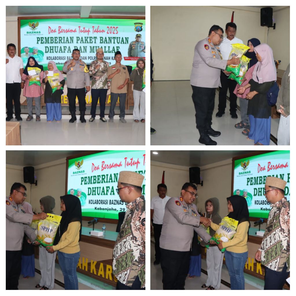 Usai doa bersama, kegiatan dilanjutkan dengan penyerahan bantuan sosial berupa paket sembako kepada kaum dhuafa dan mualaf. Penyaluran bantuan ini merupakan hasil kolaborasi antara Polres Tanah Karo dan Baznas Kabupaten Karo, yang diharapkan dapat meringankan beban masyarakat yang membutuhkan.
