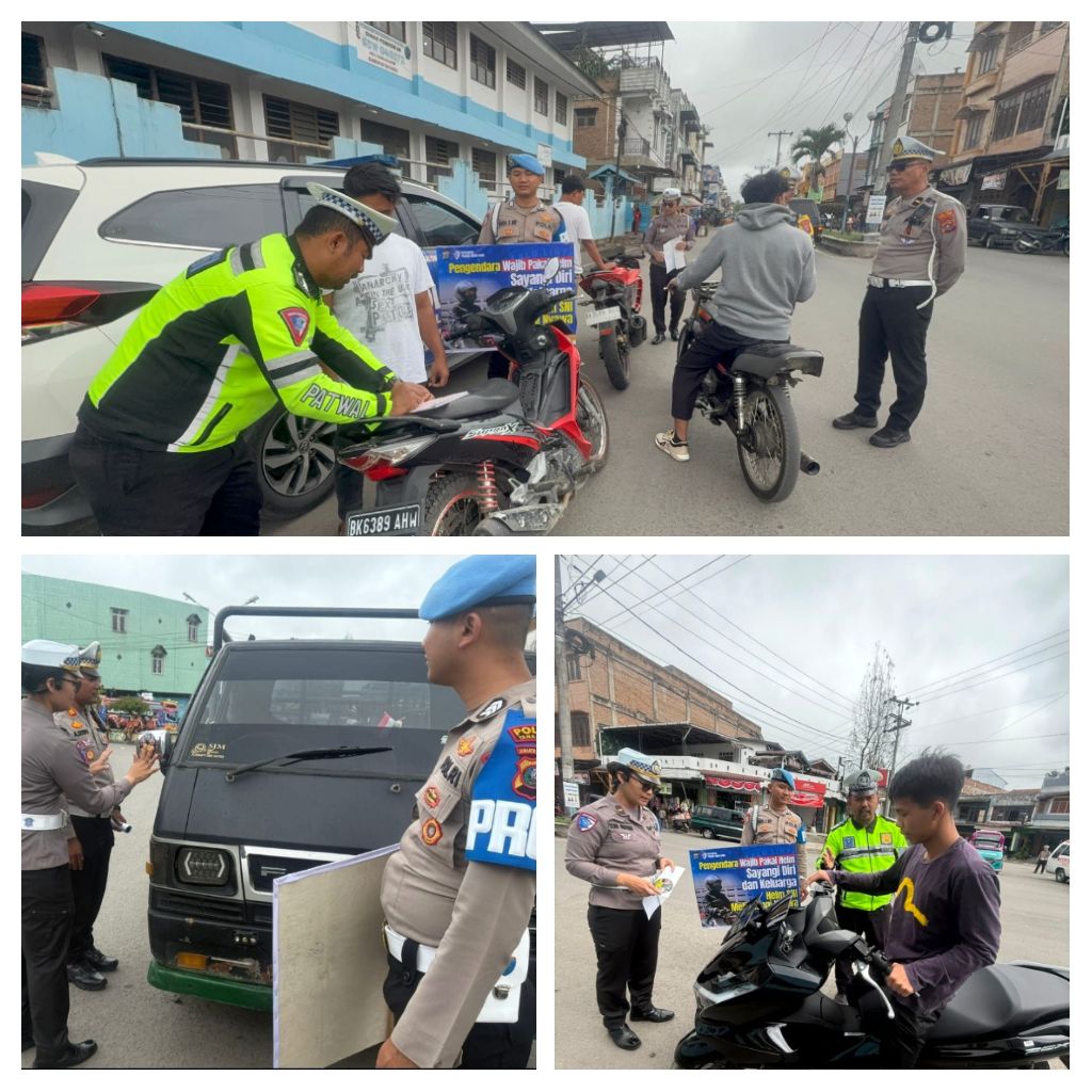 Kabanjahe, Karo – Blusuk.online – Satuan Lalu Lintas Polres Tanah Karo melaksanakan kegiatan sosialisasi Operasi Zebra Toba 2025 di Simpang Jalan Letnan Mumah Purba, Kabanjahe, pada Sabtu (22/11). Kegiatan ini dipimpin oleh Kanit Patroli Sat Lantas Polres Tanah Karo, Ipda Herwansyah, yang sekaligus menjadi narasumber utama dalam penyampaian edukasi tertib berlalu lintas kepada para pengguna jalan.