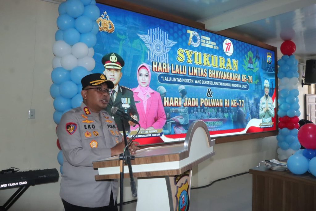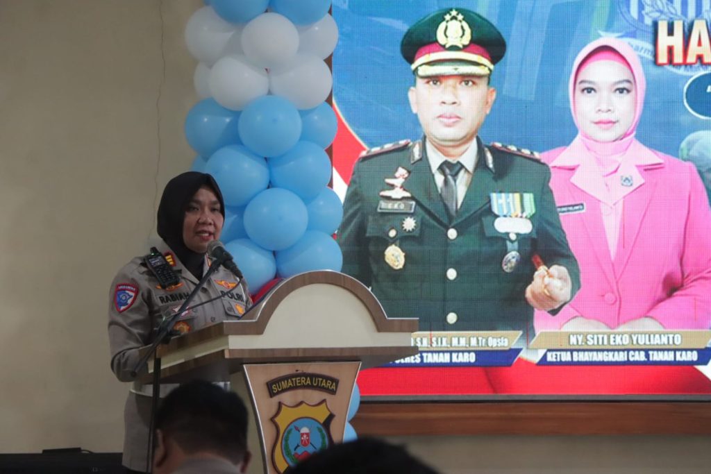 Kasat Lantas Polres Tanah Karo, AKP Rabiah Hasibuan, S.H., yang juga menjabat sebagai Pakor Polwan Polres, dalam sambutannya menyampaikan apresiasi atas peran penting Polwan dalam institusi Polri. Ia juga mengulas sejarah singkat terbentuknya Polwan di Indonesia yang kini telah berusia 77 tahun.