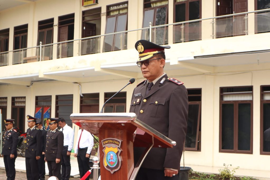 Bertindak sebagai Inspektur Upacara yakni KOMPOL Gering Damanik, S.H., sementara Perwira Upacara dijabat oleh AKP Eryes L. Situmorang, dan Komandan Upacara oleh IPDA Kami Karo-karo. Kegiatan tersebut turut dihadiri oleh para Pejabat Utama (PJU) Polres Tanah Karo, para perwira, serta personel dari berbagai satuan fungsi.