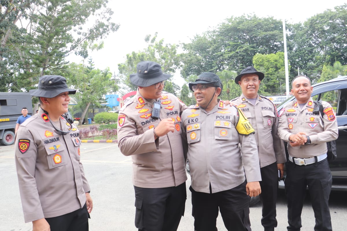 Langkat – Blusuk.online – Rombongan bantuan kemanusiaan dari Polres Tanah Karo tiba di Mapolres Langkat pada Rabu (10/12) sekitar pukul 13.30 WIB. Kedatangan rombongan dipimpin langsung oleh Kapolres Tanah Karo AKBP Eko Yulianto, S.H., S.I.K., M.M., M.Tr.Opsla, dan disambut hangat oleh Kapolres Langkat AKBP David Triyo Prasojo beserta jajaran.