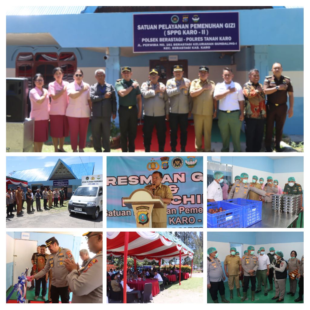 Berastagi, Karo — Blusuk.online – Dalam rangka mendukung program pemerintah pusat Makan Siang Bergizi Gratis (MBG) bagi anak sekolah, Polres Tanah Karo menggelar kegiatan Peresmian Gedung dan Launching Satuan Pelayanan Pemenuhan Gizi (SPPG) KARO-II Polsek Berastagi, Senin (27/10/2025).