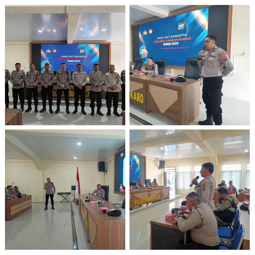 Karo – Blusuk.online – Satuan Samapta Polres Tanah Karo melaksanakan kegiatan analisa dan evaluasi (anev) sekaligus rapat koordinasi penanggulangan bencana alam, Sabtu (14/2/2026) pukul 10.00 WIB hingga selesai. Kegiatan berlangsung di Aula Pur-Pur Sage Polres Tanah Karo dan diikuti unsur internal kepolisian serta instansi terkait.