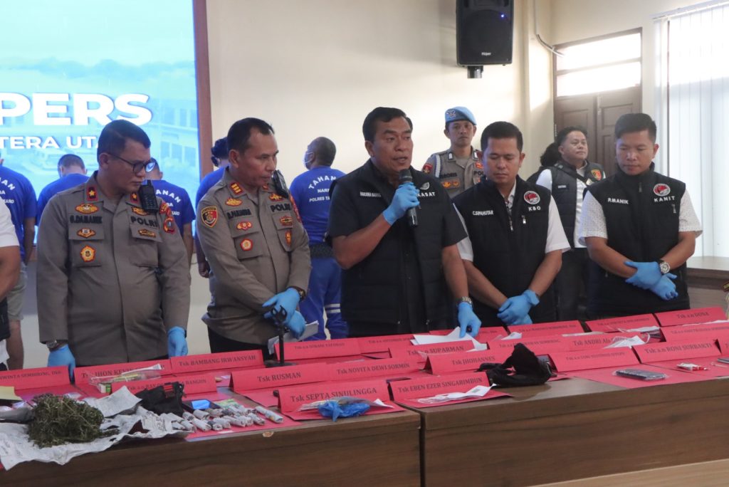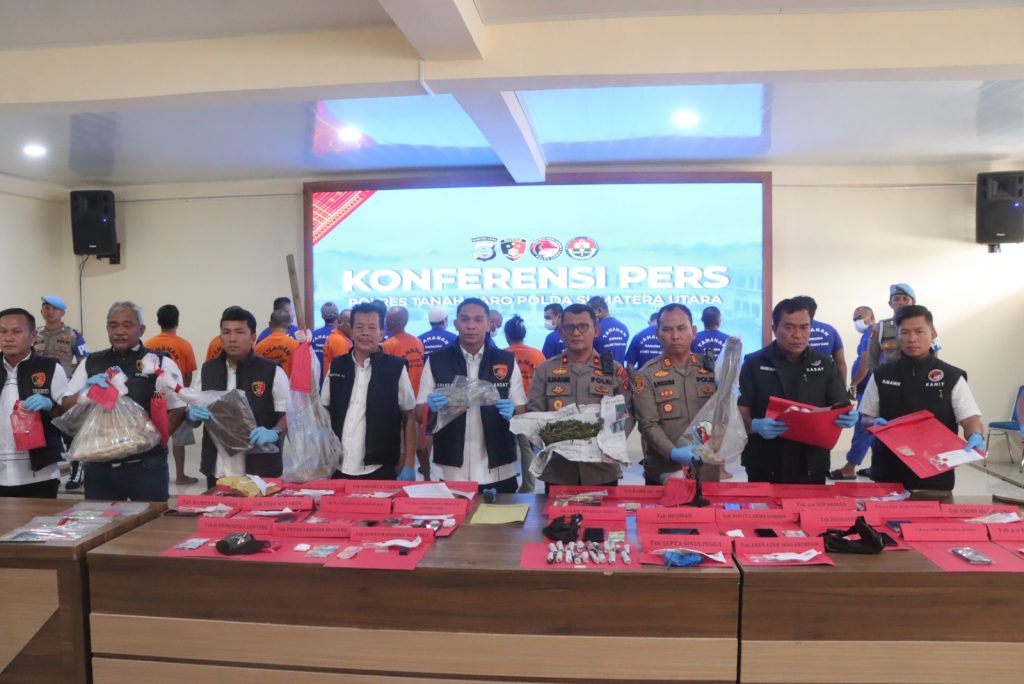 Dalam bidang narkotika, Kasat Narkoba AKP Harjuna Bangun memaparkan hasil pengungkapan yang dilakukan sepanjang periode Juni hingga September 2025. Sebanyak 50 kasus narkotika berhasil diungkap, dengan total 58 tersangka yang diamankan. Barang bukti yang berhasil disita meliputi 825,5 gram ganja kering, 45 batang tanaman ganja, serta 3,5 butir ekstasi.