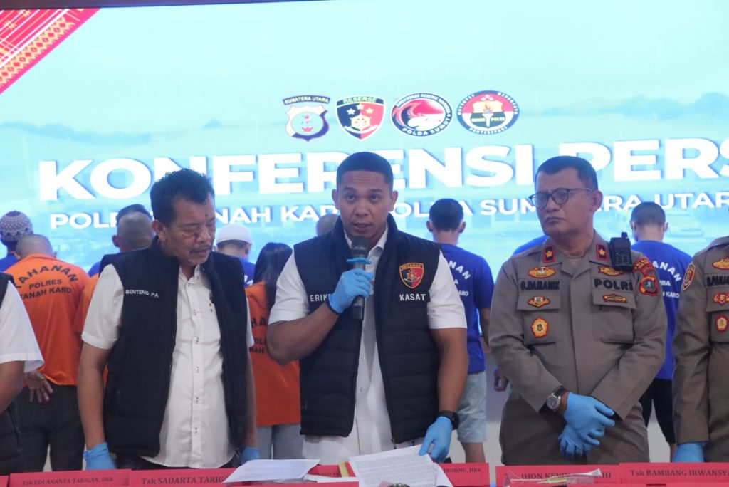 Dalam konferensi pers tersebut, pihak kepolisian menyampaikan keberhasilan mengungkap kasus pembunuhan yang terjadi di Perladangan Seledang, Desa Ndokum Siroga, Kecamatan Simpang Empat. Korban diketahui bernama Melky Refanta Perangin-angin (32), yang ditemukan terkubur di bawah pohon kopi pada Selasa malam, 16 September 2025.