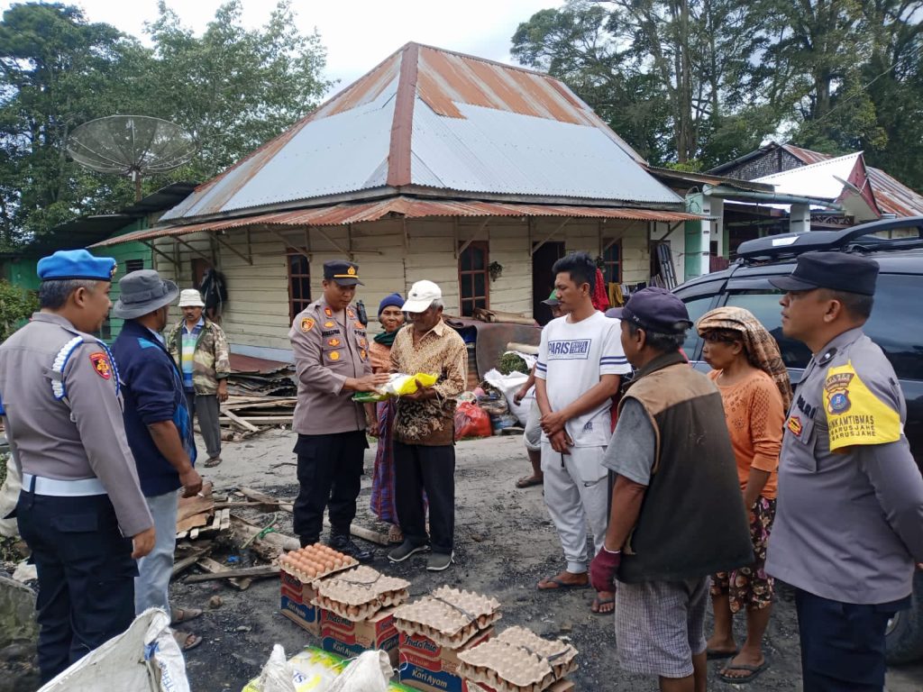 Kegiatan penyaluran bantuan berlangsung sekitar pukul 14.30 WIB, dihadiri oleh Kapolsek Barusjahe, perangkat desa, serta keluarga korban kebakaran. Bantuan yang diberikan berupa kebutuhan pokok seperti beras seberat lima kilogram, satu kotak mi instan, dan satu papan telur untuk masing-masing keluarga terdampak.