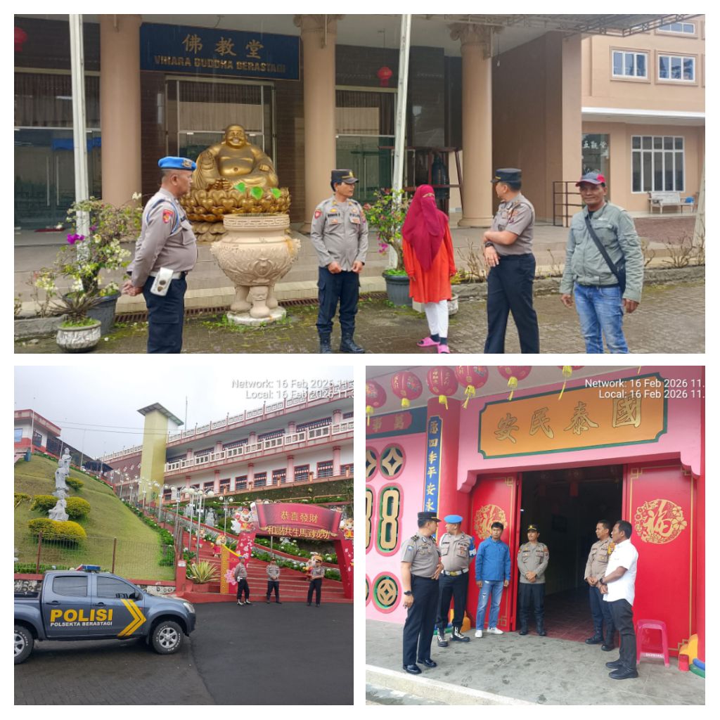 BERASTAGI – Blusuk.online – Jajaran Polsek Berastagi melaksanakan kegiatan pengamanan dan monitoring ibadah dalam rangka Perayaan Tahun Baru Imlek 2026 di wilayah hukumnya, Senin (16/2/2026) mulai pukul 08.00 WIB hingga selesai.