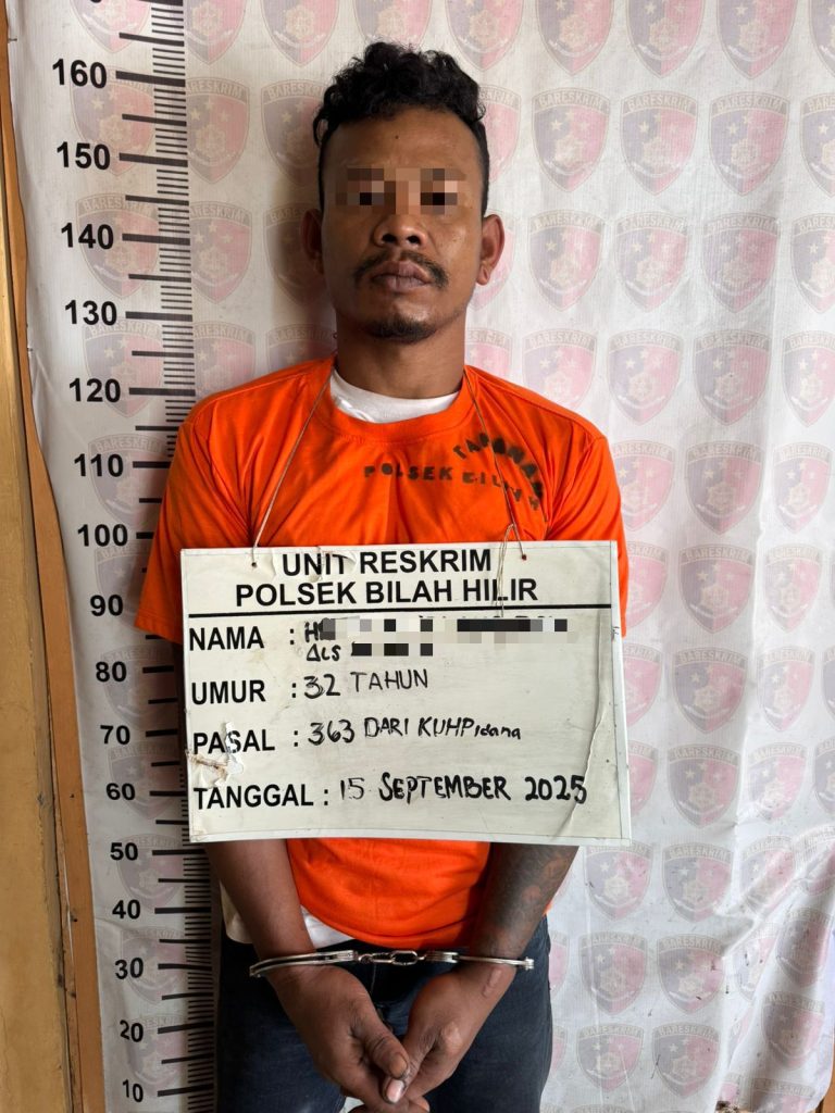 Labuhanbatu, 16 September 2025 – Blusuk.online – Personel Polsek Bilah Hilir, Polres Labuhanbatu, berhasil meringkus seorang pria yang diduga sebagai pelaku pencurian kendaraan bermotor (curanmor) di wilayah hukum Polsek Bilah Hilir. Penangkapan dilakukan pada Selasa (16/9/2025) dipimpin oleh Kanit Reskrim IPDA Rico Marthin Sihombing, S.H., atas arahan Kapolsek Bilah Hilir AKP Andita Sitepu, S.H., M.H.