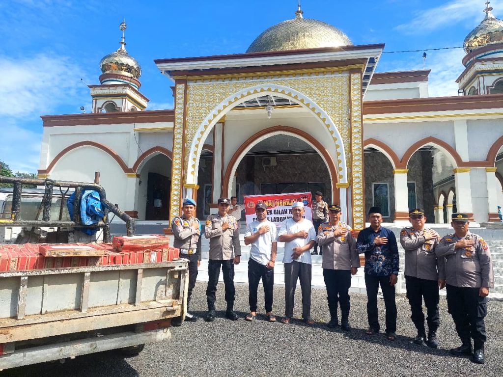 Polsek Bilah Hulu Gelar “Jumat Berkah”, Serahkan Bantuan Keramik untuk Masjid Riyadhus Sholihin