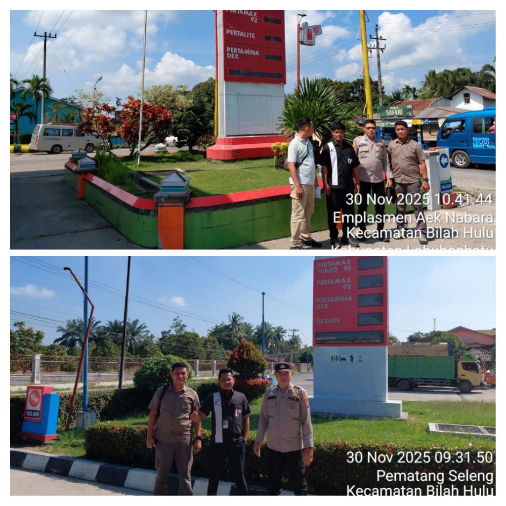 polreslabuhanbatu – Blusuk.online – Polsek Bilah Hulu di bawah kepemimpinan AKP Redi Sinulingga terus meningkatkan pengawasan terhadap ketersediaan Bahan Bakar Minyak (BBM) di wilayah hukumnya. Pada Minggu (30/11/2025), Unit Reskrim bersama personel jaga melaksanakan monitoring dan pengumpulan bahan keterangan (pulbaket) di sejumlah Stasiun Pengisian Bahan Bakar Umum (SPBU) yang berada di Kecamatan Bilah Hulu.