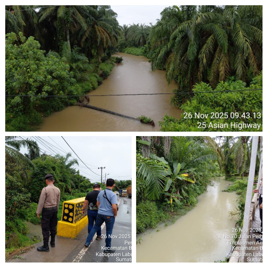 Blusuk.online – Polsek Bilah Hulu Polres Labuhanbatu di bawah pimpinan AKP Redi Sinulingga meningkatkan kewaspadaan terhadap potensi bencana banjir akibat cuaca hujan yang melanda wilayah tersebut. Pada Rabu (26/11/25), personel yang dipimpin Kanit Provost IPDA S. Siahaan, S.H. bersama Piket Fungsi melaksanakan patroli dan monitoring situasi kamtibmas serta kondisi alam di sejumlah titik rawan.