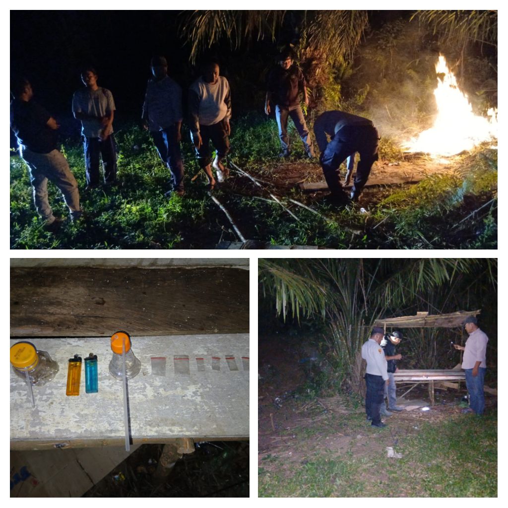 Dalam pelaksanaan penggerebekan di area perkebunan sawit yang diduga kerap dijadikan tempat berkumpul, petugas tidak menemukan adanya transaksi narkotika maupun pelaku di lokasi. Namun demikian, petugas menemukan sejumlah barang yang diduga berkaitan dengan penyalahgunaan narkoba, berupa plastik klip transparan kosong, mancis, dan alat hisap (bong). Barang-barang tersebut kemudian diamankan untuk kepentingan penyelidikan lebih lanjut.