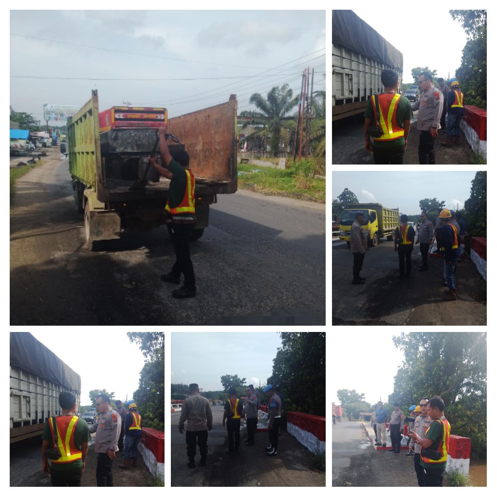 Personel Polsek Kotapinang bersama jajaran Polres Labuhanbatu Selatan turut terlibat langsung, bersinergi dengan para pekerja dalam proses pengaspalan badan jembatan serta sisi kiri dan kanan akses lintasan.