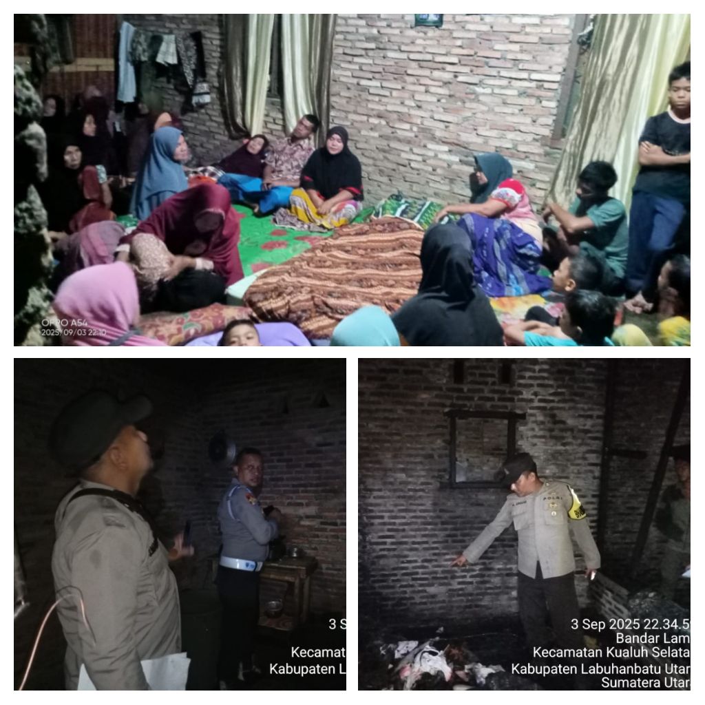 Polsek Kualuh Hulu Cek TKP Kebakaran Rumah di Bandar Lama, Balita Jadi Korban