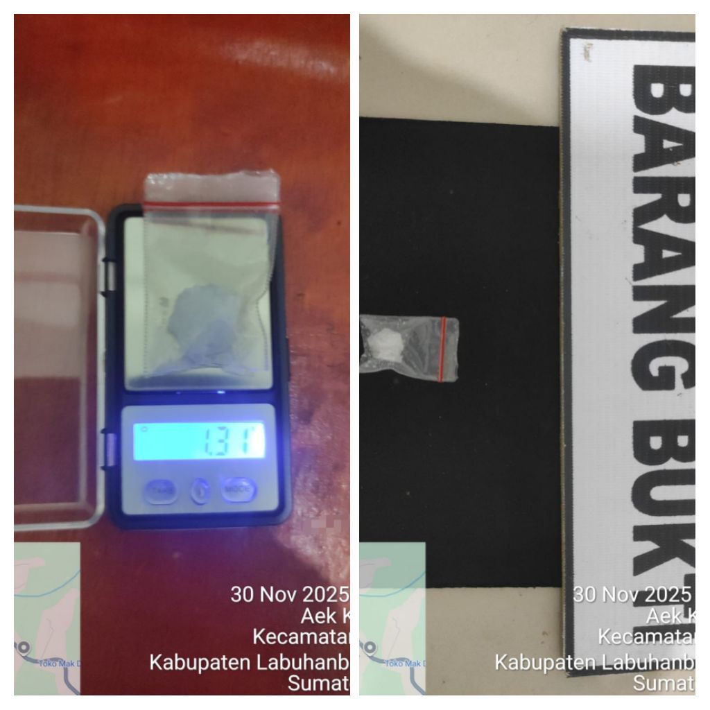 LABUHANBATU UTARA – Blusuk.online – Polsek Na IX-X Polres Labuhanbatu kembali berhasil mengungkap kasus penyalahgunaan narkotika jenis sabu. Seorang pria berinisial R alias Rudi (29), warga Dusun I Desa Aek Tapa, Kecamatan Merbau, diamankan pada Minggu (30/11/2025) sekitar pukul 00.10 WIB di Dusun I Desa Simpang Merbau, Kecamatan Na IX-X.