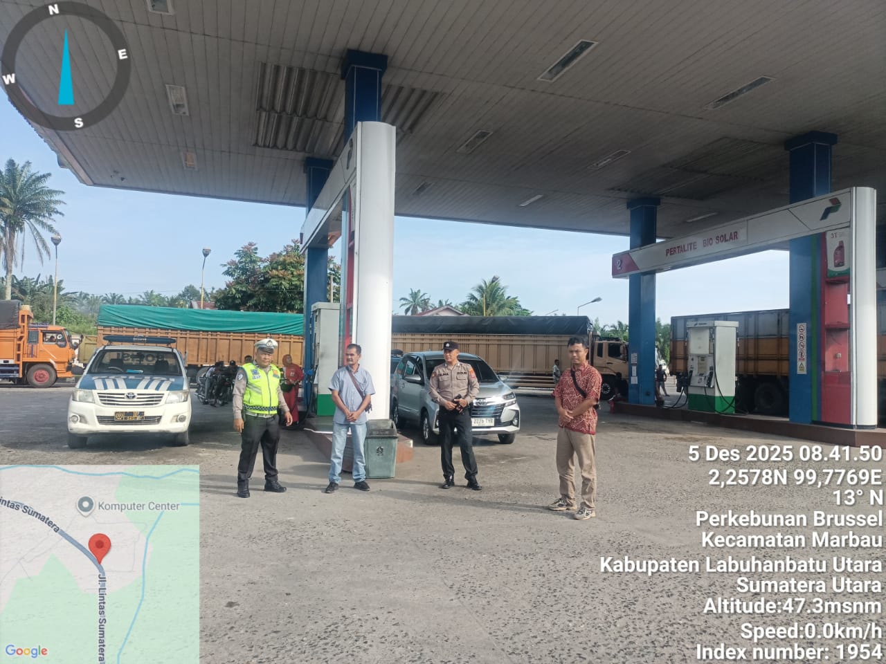 polreslabuhanbatu – Blusuk.online – Polsek Na IX-X melaksanakan patroli serta berkoordinasi dengan pihak SPBU untuk memastikan ketersediaan dan distribusi Bahan Bakar Minyak (BBM) tetap aman dan terkendali, Jumat (05/12/2025). Langkah ini dilakukan sebagai upaya antisipasi penyalahgunaan BBM serta mencegah terjadinya antrian panjang yang berpotensi menimbulkan kemacetan di Jalinsum wilayah hukum Polsek Na IX-X.