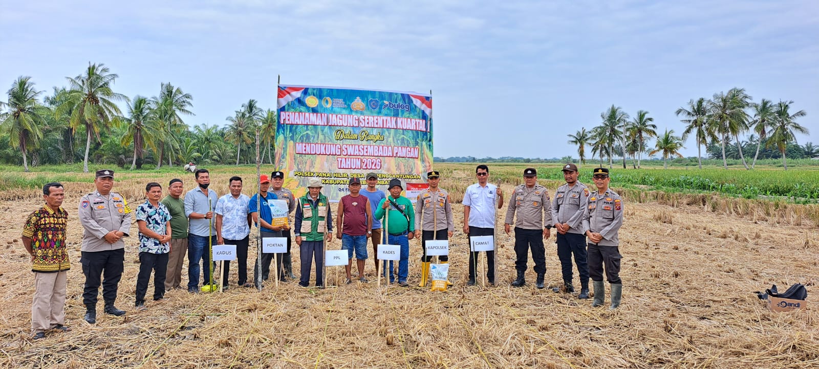 Penanaman jagung dilaksanakan di lahan seluas kurang lebih 3 hektare dengan menggunakan bibit jagung jenis Pioneer P32 Cap Singa. Pemilihan bibit tersebut merupakan permintaan dari kelompok tani setempat karena dinilai sesuai dengan kondisi cuaca panas di wilayah Panai Hilir.Polsek Panai Hilir Pimpin Penanaman Jagung Serentak Kuartal I Dukung Swasembada Pangan 2026.