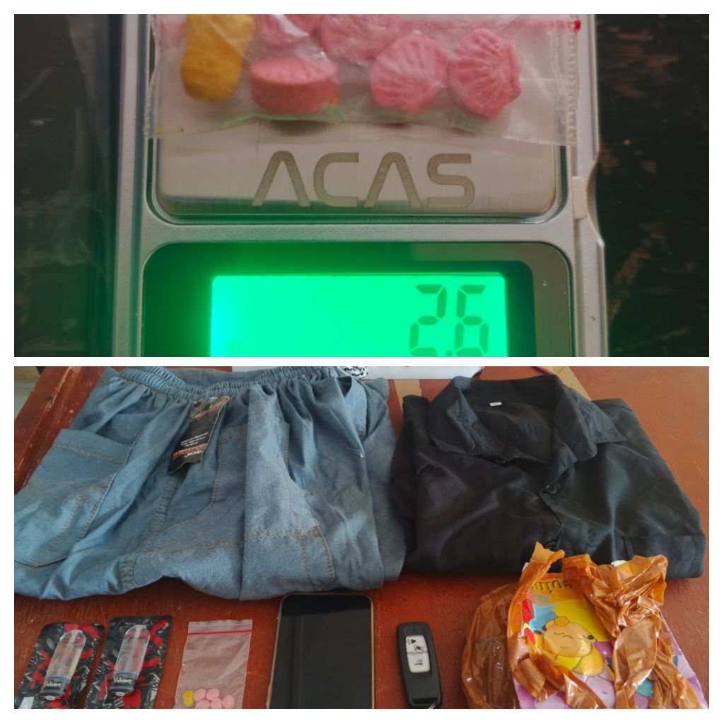 Dari tangan pelaku, polisi menyita sejumlah barang bukti berupa 2 botol liquid vape diduga narkotika merek Yakuza XL dengan berat bruto 17,4 gram, 6 butir pil ekstasi seberat 2,6 gram bruto, serta barang lainnya seperti pakaian, satu unit sepeda motor Honda ADV 160, dan satu unit handphone.
