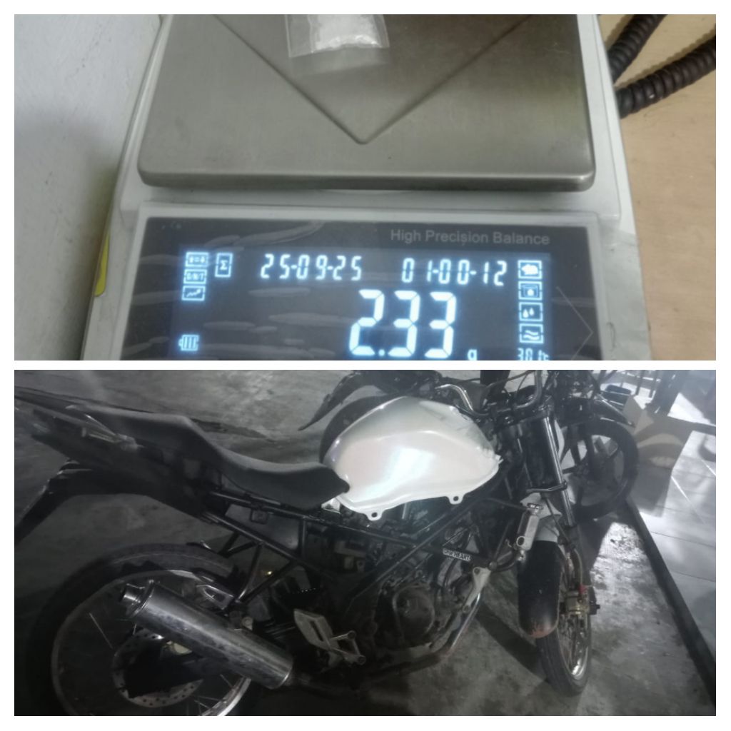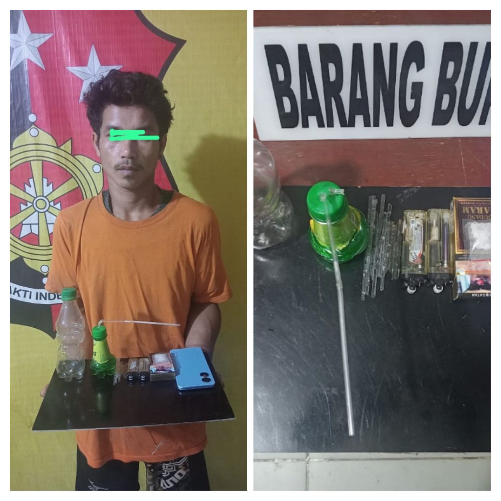 Petugas menemukan sejumlah barang bukti di lokasi kejadian, termasuk satu bungkus rokok Surya Gudang Garam yang di dalamnya terdapat plastik bening berisi narkotika jenis sabu dengan berat bruto 2,33 gram. Selain itu, turut diamankan dua buah kaca pirek, dua buah mancis, tujuh buah pipet, dua buah bong, satu unit sepeda motor Honda Verza warna hitam putih dengan nomor polisi BK 3753 YBI, dan satu unit handphone Android merk OPPO warna biru.