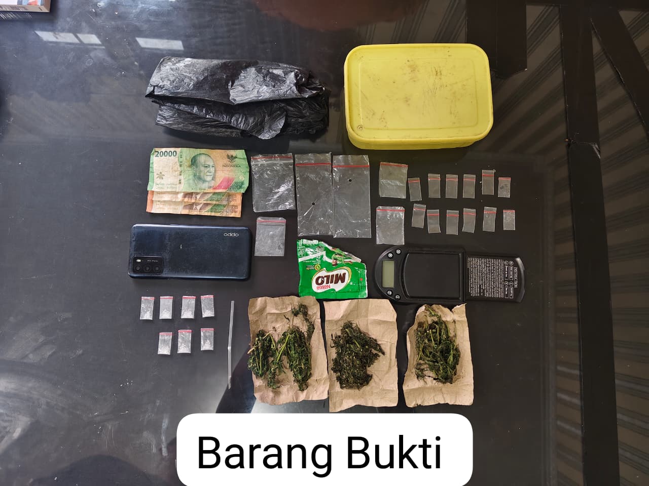 Dari tangan tersangka, petugas berhasil mengamankan barang bukti berupa tujuh paket narkotika yang diduga jenis sabu dengan berat netto 0,40 gram serta tiga paket narkotika jenis ganja dalam kondisi lembab dengan berat netto 25,09 gram.