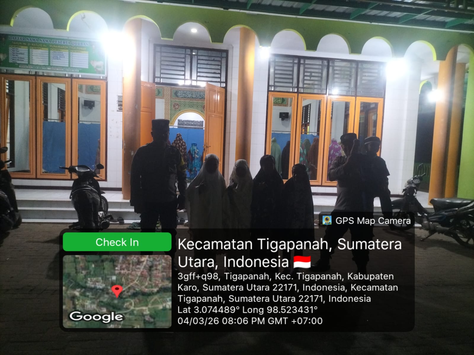 Kegiatan yang dimulai sekitar pukul 20.00 WIB tersebut dipusatkan di Masjid Al-Munawwarah, Desa Tigapanah, Kecamatan Tigapanah, Kabupaten Karo. Pengamanan dilakukan guna memastikan umat Muslim dapat menjalankan ibadah dengan aman, nyaman, dan khusyuk.