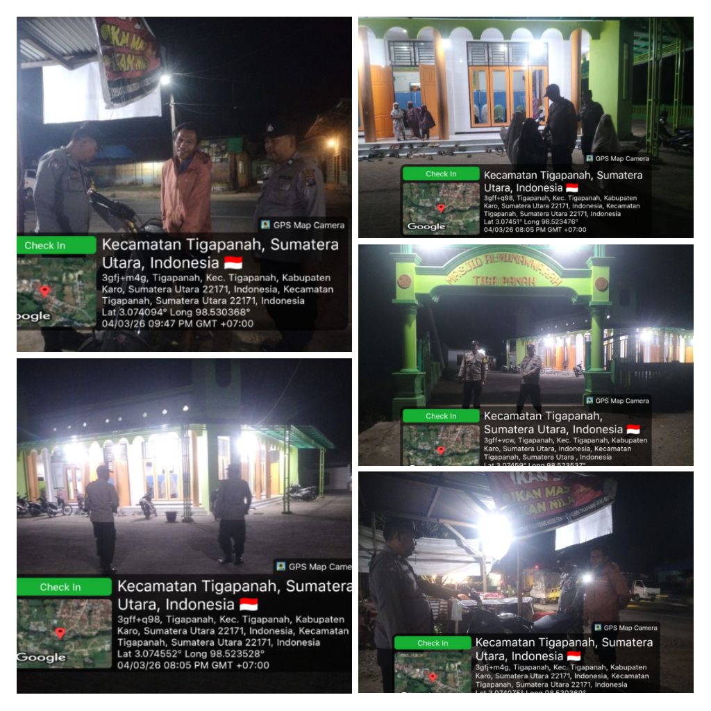 Karo – Blusuk.online – Dalam rangka memberikan rasa aman kepada masyarakat selama bulan suci Ramadhan 1447 Hijriah, personel Polsek Tigapanah melaksanakan kegiatan pengamanan Sholat Tarawih sekaligus patroli rutin yang ditingkatkan (KRYD) di wilayah Kecamatan Tigapanah, Rabu (4/3/2026).