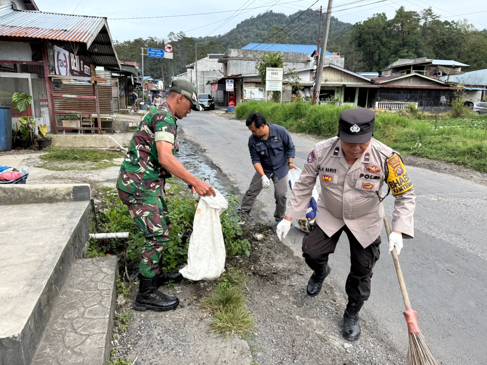 Karo – Blusuk.online – Dalam rangka menciptakan situasi keamanan dan ketertiban masyarakat (kamtibmas) yang aman dan kondusif, Polsek Tigapanah melaksanakan kegiatan gotong royong bersama masyarakat di Desa Dolatrakyat, Kecamatan Dolatrakyat, Kabupaten Karo, Jumat (06/02/2026) mulai pukul 09.00 WIB hingga selesai.