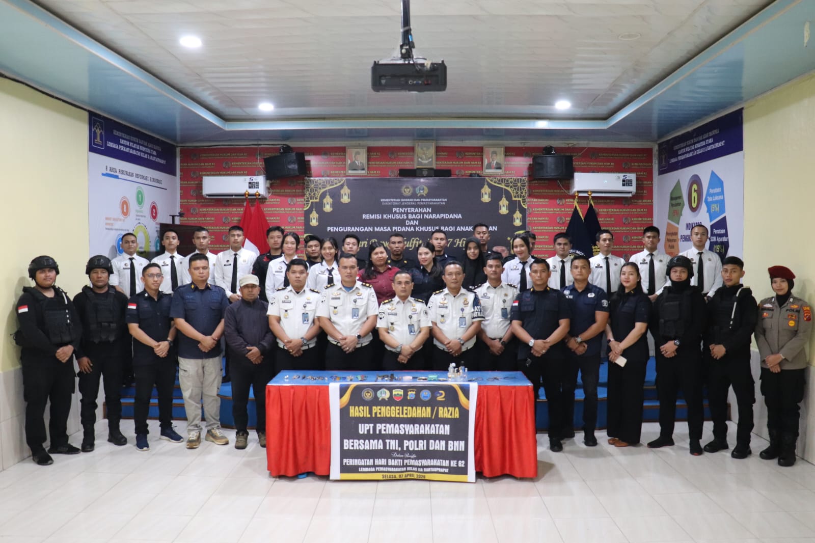 Rantauprapat – Blusuk.online – Dalam rangka menyambut Hari Bakti Pemasyarakatan (HBP) ke-62, Lembaga Pemasyarakatan (Lapas) Kelas IIA Rantauprapat melaksanakan razia gabungan berupa penggeledahan kamar hunian warga binaan. Kegiatan ini melibatkan sejumlah Aparat Penegak Hukum (APH) sebagai bentuk komitmen dalam mendukung program P4GN (Pencegahan, Pemberantasan, Penyalahgunaan, dan Pereda ygran Gelap Narkotika) di lingkungan pemasyarakatan.