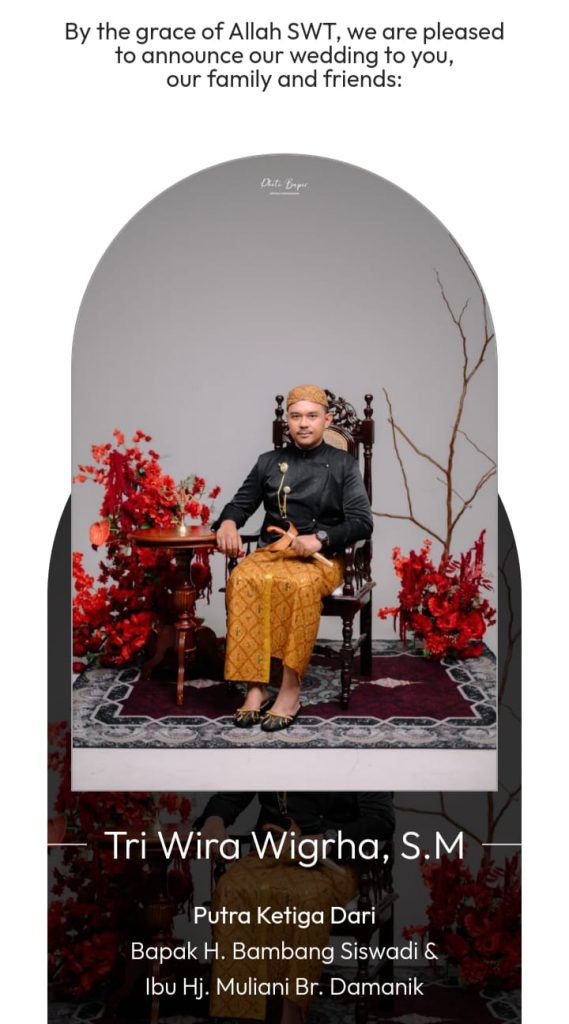 Medan Estate, Blusuk Online — Minggu (07/12/25), suasana penuh sukacita menyelimuti Gedung Gelanggang Mahasiswa Haji Unimed, Jl. Williem Iskandar Pasar V, Medan Estate, tempat diselenggarakannya acara resepsi pernikahan pasangan Tri Wira Wigrha, S.M., putra ketiga dari Bapak H. Bambang Siswadi dan Ibu Hj. Muliani br. Damanik, dengan Ully Indah Sari, putri pertama dari Bapak Syawaluddin Harahap dan Ibu Syarifah Laily.