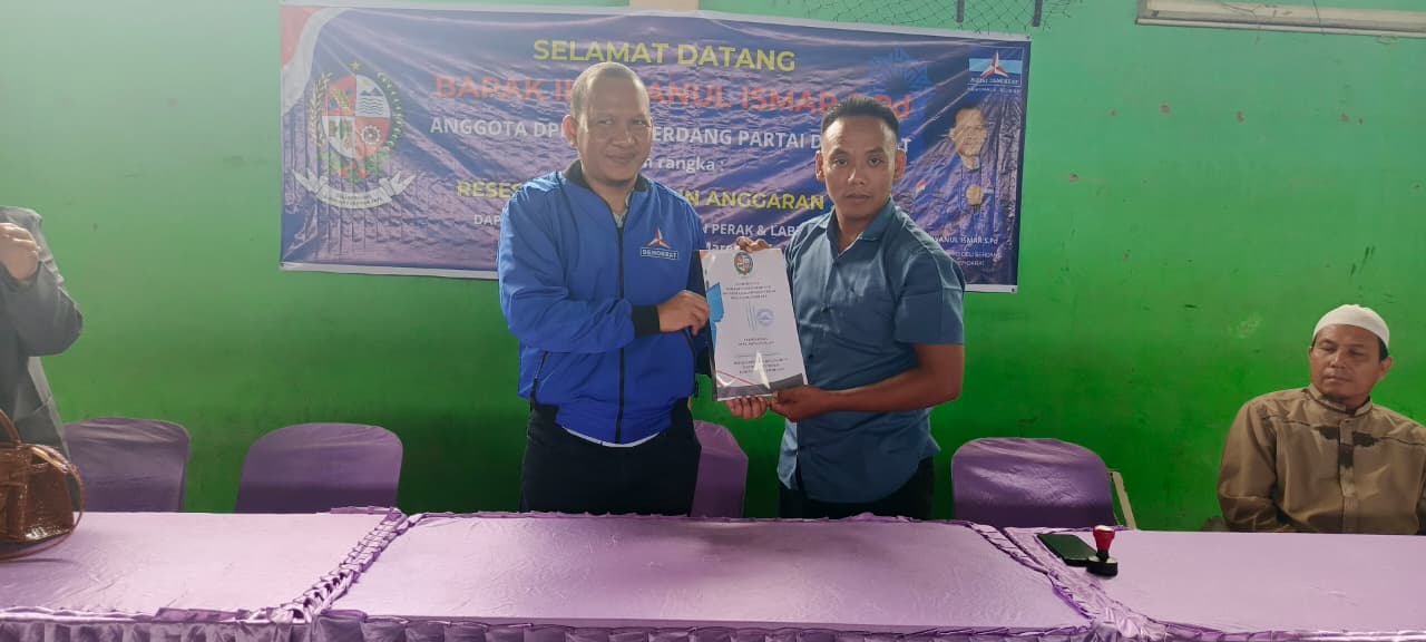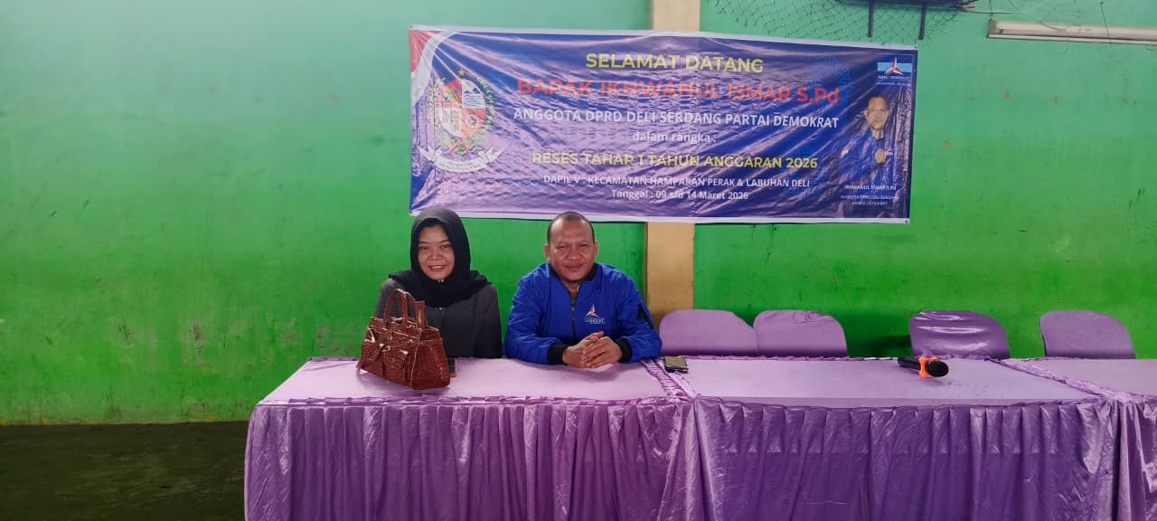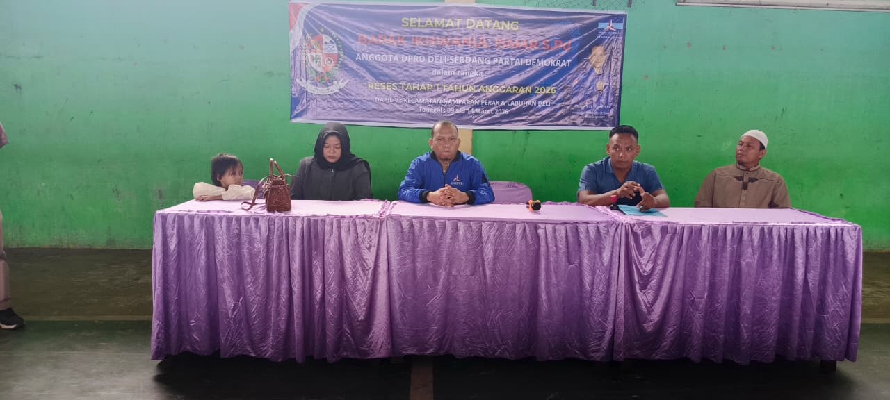 Anggota DPRD Kabupaten Deli Serdang dari Ikhwanul Ismar (Partai Demokrat) melaksanakan kegiatan reses untuk menyerap aspirasi masyarakat di Mas Tarbiyah Islamiah, Sabtu (14/03/2026).