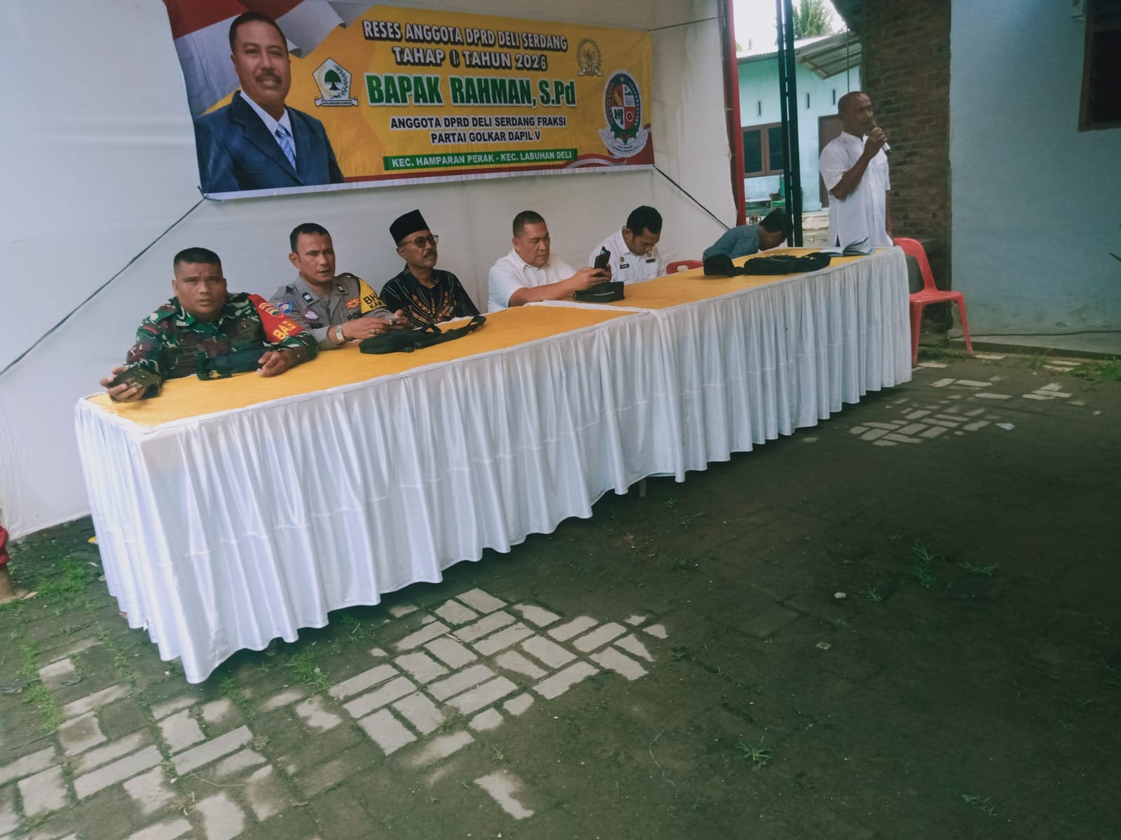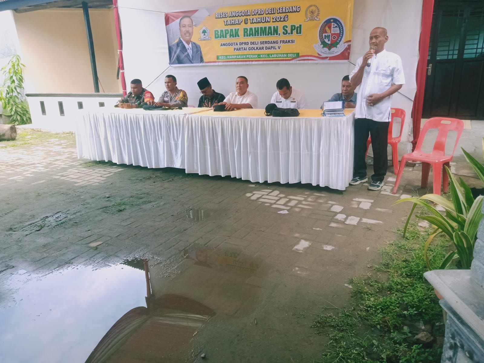 Deli Serdang – Anggota DPRD Kabupaten Deli Serdang dari Fraksi Partai Golkar, Rahman, S.Pd, melaksanakan kegiatan Reses Tahap I Tahun 2026 di Dusun 13 Emplasmen, Desa Klambir Lima Kebun, Kecamatan Hamparan Perak, Kabupaten Deli Serdang, Rabu (11/3/2026).