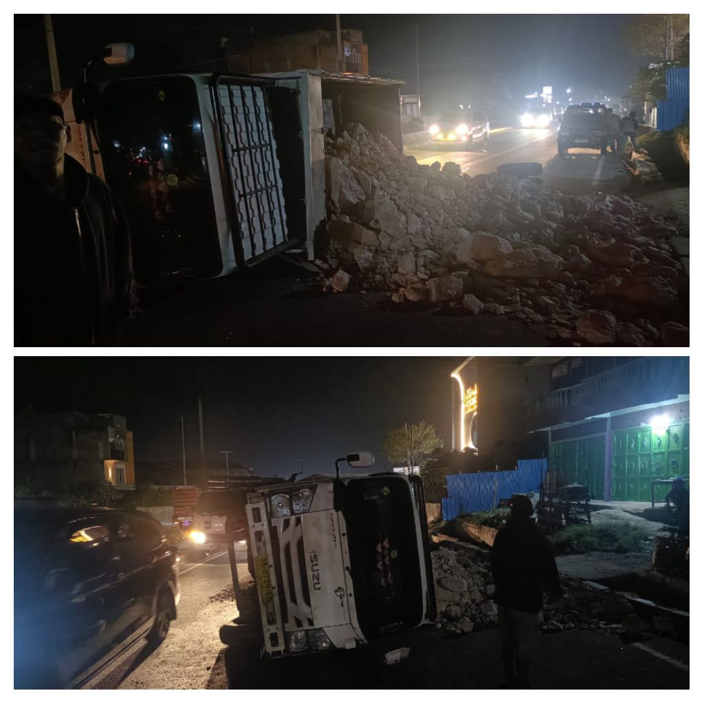 Laporan yang diterima petugas piket 110 menyebutkan adanya kecelakaan tunggal yang melibatkan sebuah truk di Jalan Jamin Ginting, tepatnya di sekitar Rumah Sakit Efarina, Berastagi.