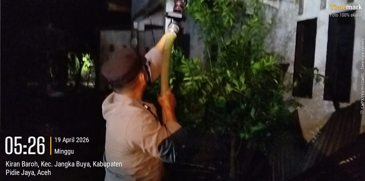 Respons cepat dan tindakan sigap jajaran Polsek Jangka Buya kembali terlihat saat musibah kebakaran melanda rumah warga di Gampong Kiran Baroh, Kecamatan Jangka Buya, Kabupaten Pidie Jaya, Minggu (19/04/2026) sekira pukul 04.10 WIB.