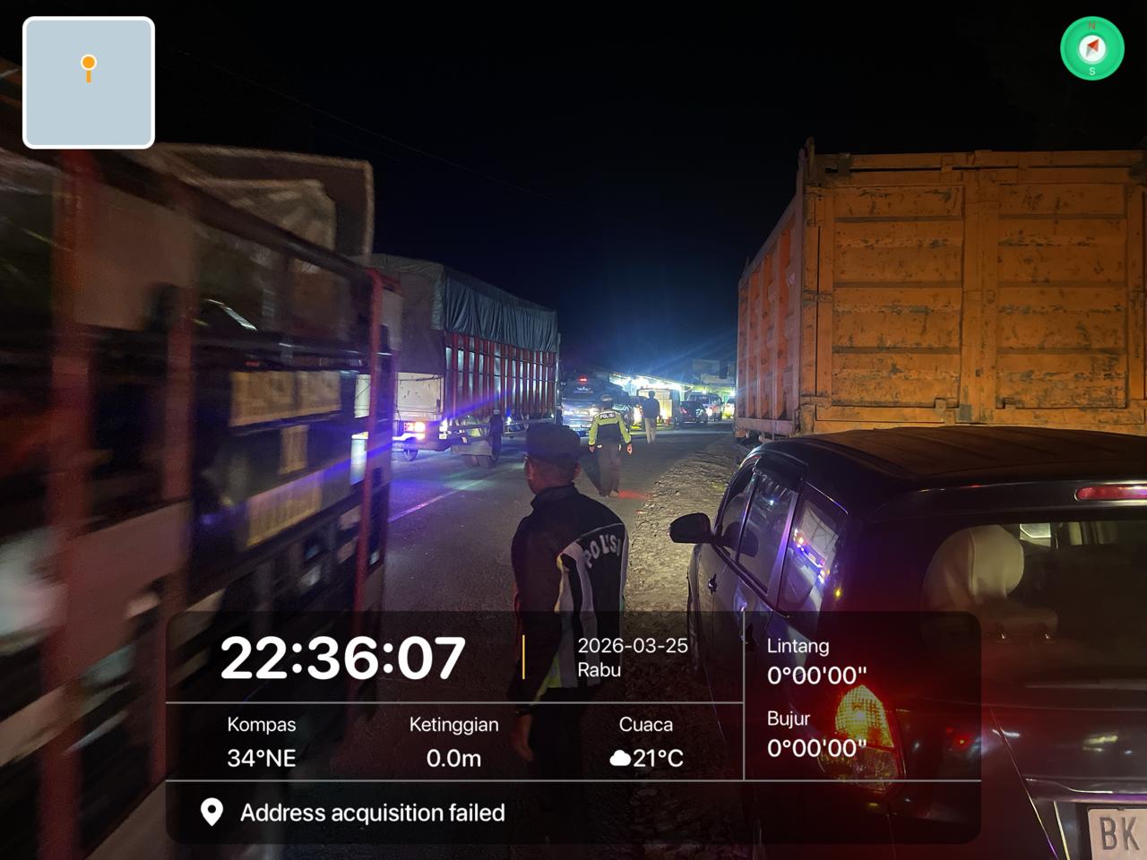 Petugas kepolisian bergerak cepat ke tempat kejadian perkara (TKP) dan tiba sekitar pukul 22.36 WIB. Setibanya di lokasi, personel langsung melakukan pengaturan arus lalu lintas guna mengurai kemacetan.