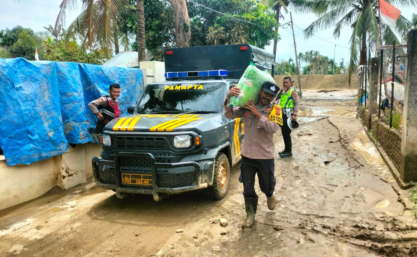 Tak hanya menyalurkan bantuan, personel di lapangan juga terlihat berinteraksi langsung dengan warga, memberikan dukungan moril serta memastikan situasi keamanan dan ketertiban masyarakat tetap aman dan kondusif.