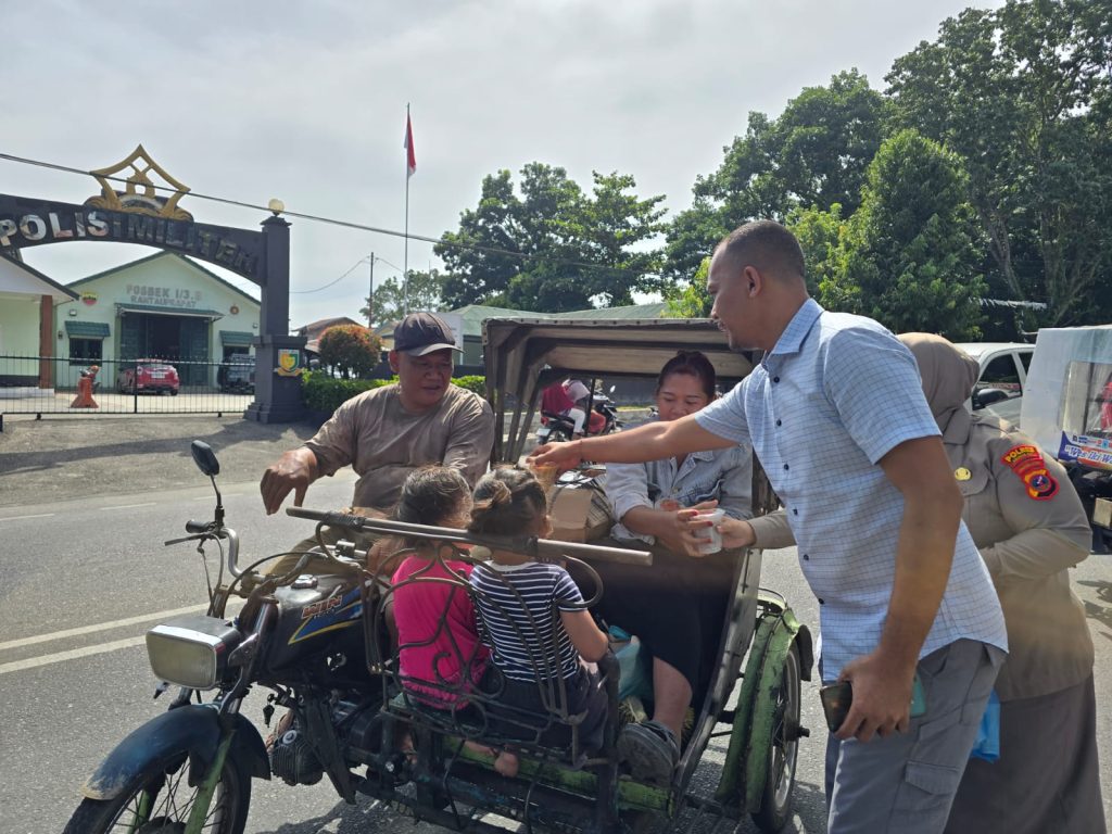 Sebanyak 50 bungkus bubur sehat dibagikan secara langsung oleh personel Sat Intelkam kepada warga yang melintas di depan Mako Polres Labuhanbatu. Aksi sosial ini mendapat sambutan hangat dan ucapan terima kasih dari masyarakat penerima.