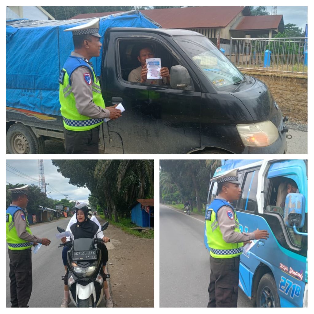 polreslabuhanbatu – Blusuk.online – Satuan Lalu Lintas Polres Labuhanbatu terus meningkatkan upaya edukasi keselamatan berkendara melalui kegiatan pembagian brosur kepada para pengguna jalan di Kecamatan Aek Natas, Kabupaten Labuhanbatu Utara, Senin (24/11/2025). Kegiatan dilaksanakan di sepanjang Jalinsum Aek Natas, tepatnya di depan Mapolsek Aek Natas, sebagai bagian dari rangkaian Operasi Zebra Toba 2025 yang berlangsung mulai 17 hingga 30 November 2025.
