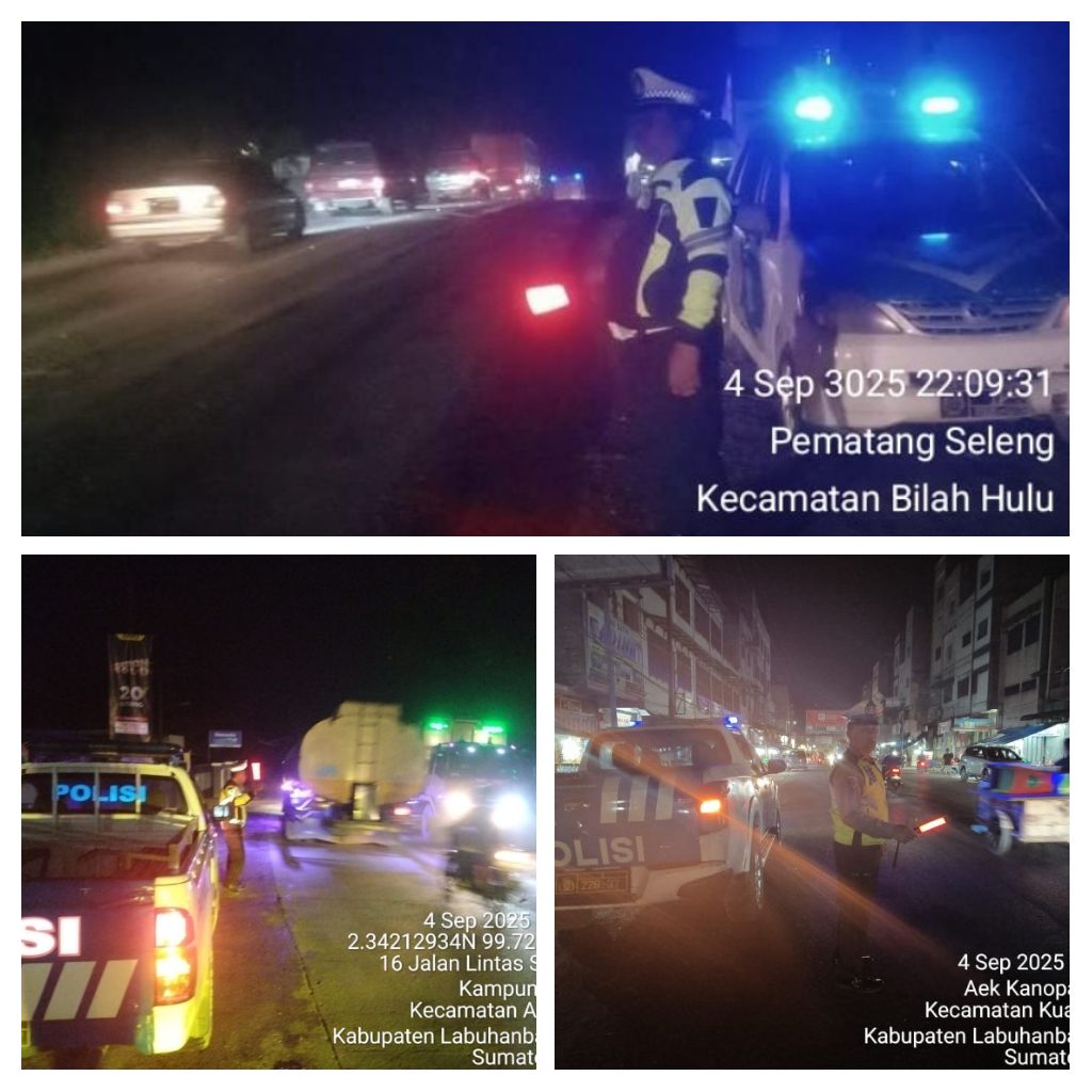 Labuhanbatu, 4 September 2025 – Blusuk.online – Dalam rangka menjaga keamanan dan ketertiban masyarakat pada malam hari, Satuan Lalu Lintas Polres Labuhanbatu yang dipimpin langsung oleh IPTU M. Rizal, S.H., melaksanakan kegiatan Blue Light Patrol (BLP) di sejumlah titik strategis di wilayah hukum Polres Labuhanbatu. Kegiatan dimulai pada pukul 21.00 WIB dan berlangsung hingga larut malam.