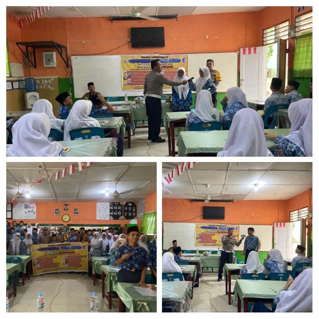 Labuhanbatu – Blusuk.online – Satuan Lalu Lintas (Sat Lantas) Polres Labuhanbatu di bawah pimpinan IPTU M. Rizal melaksanakan kegiatan Pendidikan Masyarakat Lalu Lintas (Dikmas Lantas) dalam rangka Operasi Zebra Toba 2025. Kegiatan berlangsung pada Rabu (26/11/2025) sekitar pukul 07.30 WIB di MTsN 1 Rantauprapat, dengan sasaran para guru serta siswa-siswi di sekolah tersebut.