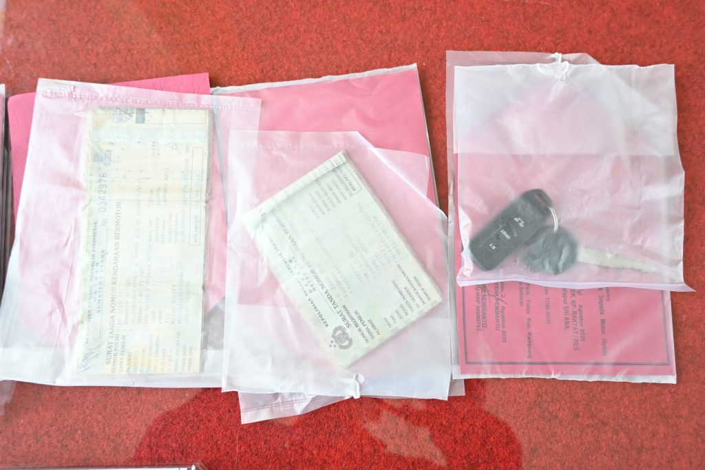 Sejumlah dokumen kendaraan juga ditemukan, termasuk beberapa lembar STNK dan BPKB asli yang diduga digunakan untuk mempermudah proses jual beli motor curian.