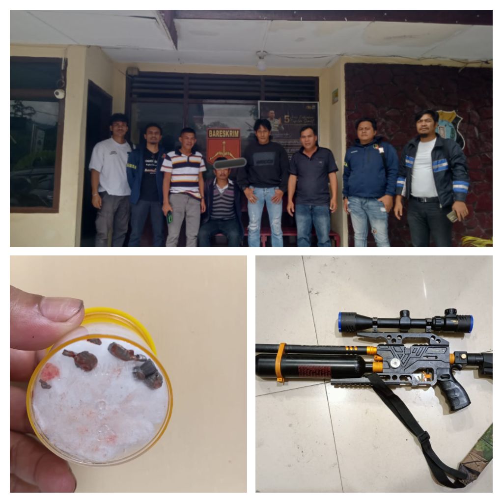 Dalam pengungkapan kasus ini, polisi turut mengamankan sejumlah barang bukti berupa pakaian korban dan satu pucuk senjata angin jenis gejluk yang digunakan pelaku.