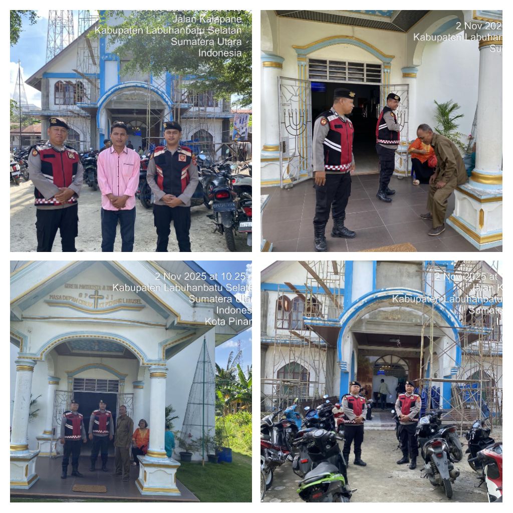 Kotapinang, Labuhanbatu Selatan — Blusuk.onlin – Dalam rangka menjaga situasi kamtibmas yang aman dan kondusif, Satuan Samapta Presisi Polres Labuhanbatu Selatan melaksanakan patroli pengamanan di sejumlah tempat ibadah di Kecamatan Kotapinang, Minggu (2/11/2025) mulai pukul 11.00 WIB hingga selesai.