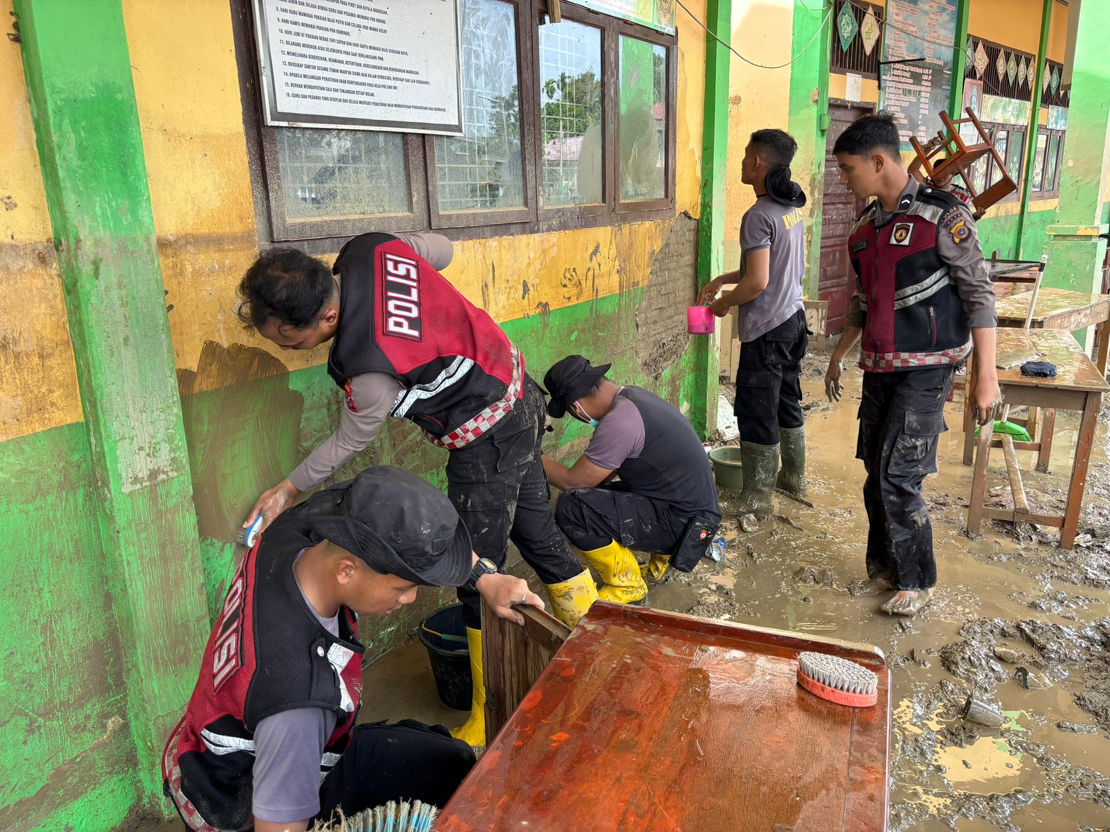 “Selain menjaga stabilitas keamanan, kegiatan ini juga menjadi wujud nyata kehadiran Polri dalam membantu percepatan pemulihan pascabencana melalui gotong royong bersama masyarakat,” ujar AKP Mahruzar.