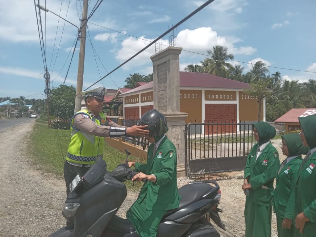Dalam kegiatan tersebut, personel Satlantas BRIPKA D. Sinabang dan BRIPDA Rapael memberikan sosialisasi pentingnya keselamatan berkendara, seperti penggunaan helm berstandar SNI, mematuhi rambu lalu lintas, dan menjaga keselamatan pribadi serta orang lain di jalan.