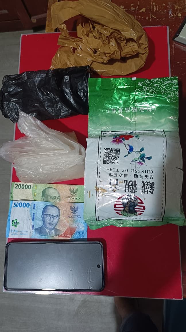 Selain sabu, petugas turut menyita barang bukti lain berupa lakban warna kuning, plastik kresek hitam dan putih, satu unit handphone Android merek POVA, serta uang tunai sebesar Rp70.000 yang diduga berkaitan dengan tindak pidana tersebut.