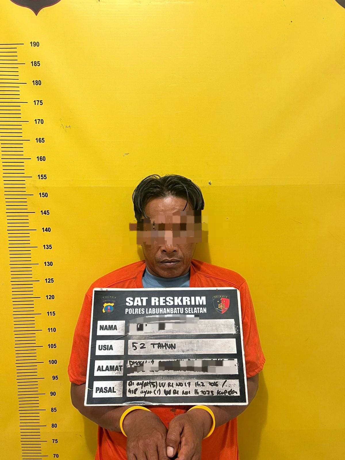 Peristiwa tersebut diketahui terjadi pada Senin, 10 Juni 2024 sekitar pukul 05.30 WIB di Dusun VI Sei Kalam, Desa Teluk Panji, Kecamatan Torgamba, Kabupaten Labuhanbatu Selatan. Dalam kasus ini, polisi telah mengamankan seorang pria berinisial S (52) yang berprofesi sebagai petani dan merupakan warga Dusun VI Sei Kalam, Desa Teluk Panji, Kecamatan Torgamba.